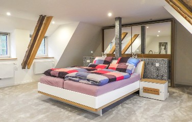Unsere ca. 115 qm grosse Wohnung verfügt über WLAN, ein gemütliches Wohnzimmer mit Fernseher, ein Lesezimmer mit Radio, ein Bad mit Dusche und WC im EG, eine vollausgestatte Küche inklusive Geschirrspüler mit gemütlicher Essecke, ein Kinderzimmer mit 2 Einzelbetten und im Dachgeschoss über ein Schlafzimmer mit Doppelbett und freistehender Badewanne sowie ein extra WC mit Waschmöglichkeit. Ein Kinderbett für Kleinkinder ist ebenfalls vorhanden.